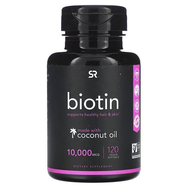 SR® Biotin is an essential micronutrient involved in Keratin synthesis. Formulated with Virgin Coconut Oil, SR® Biotin is an easy way to add this B vitamin to your daily routine.