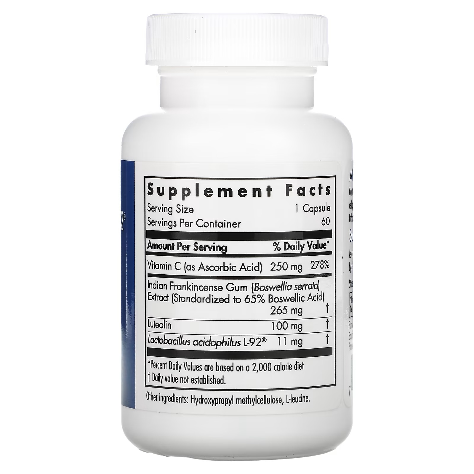 Contains Lactobacillus acidophilus L-92®, a sterilized immunobiotic dry cell powder which helps balance Th1/Th2 and other immune cytokines. Enhanced with vitamin C, Boswellia, and Luteolin.