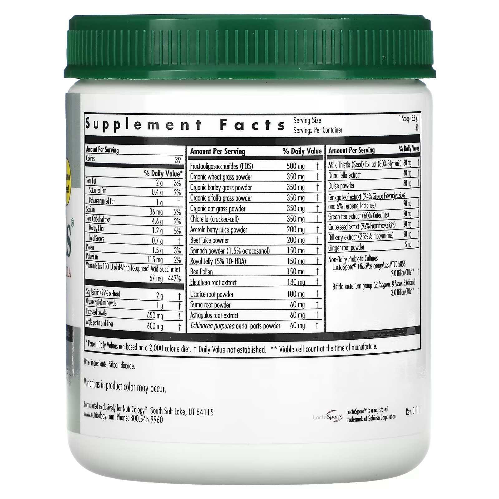 ProGreens® is an all-natural blended variety of “Super Foods” that provide broad-spectrum nutritional support from organic grasses and natural food factors not found in isolated vitamins or mineral concentrates. In addition to the green grasses, sea vegetables (seaweed) and algae, ProGreens® contains adaptogenic herbs, active probiotics, fibers, and a variety of nutrient-rich superfoods.