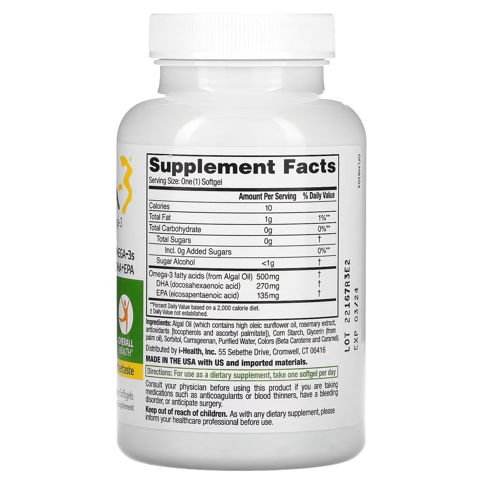 Ovega-3, Plant Based Omega-3, DHA + EPA, 500 mg, 90 Vegetarian Softgels