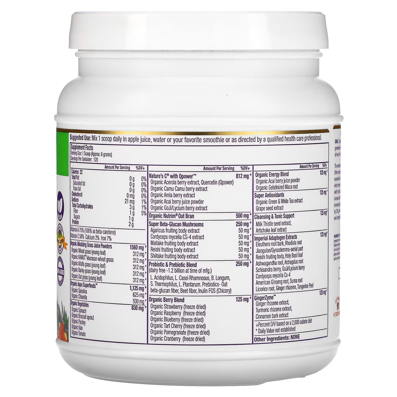 • Alkalizing Grass Juice Powders + Aqua Superfoods + Berries + Nature’s C + Veggies + Probiotics + Adaptogens