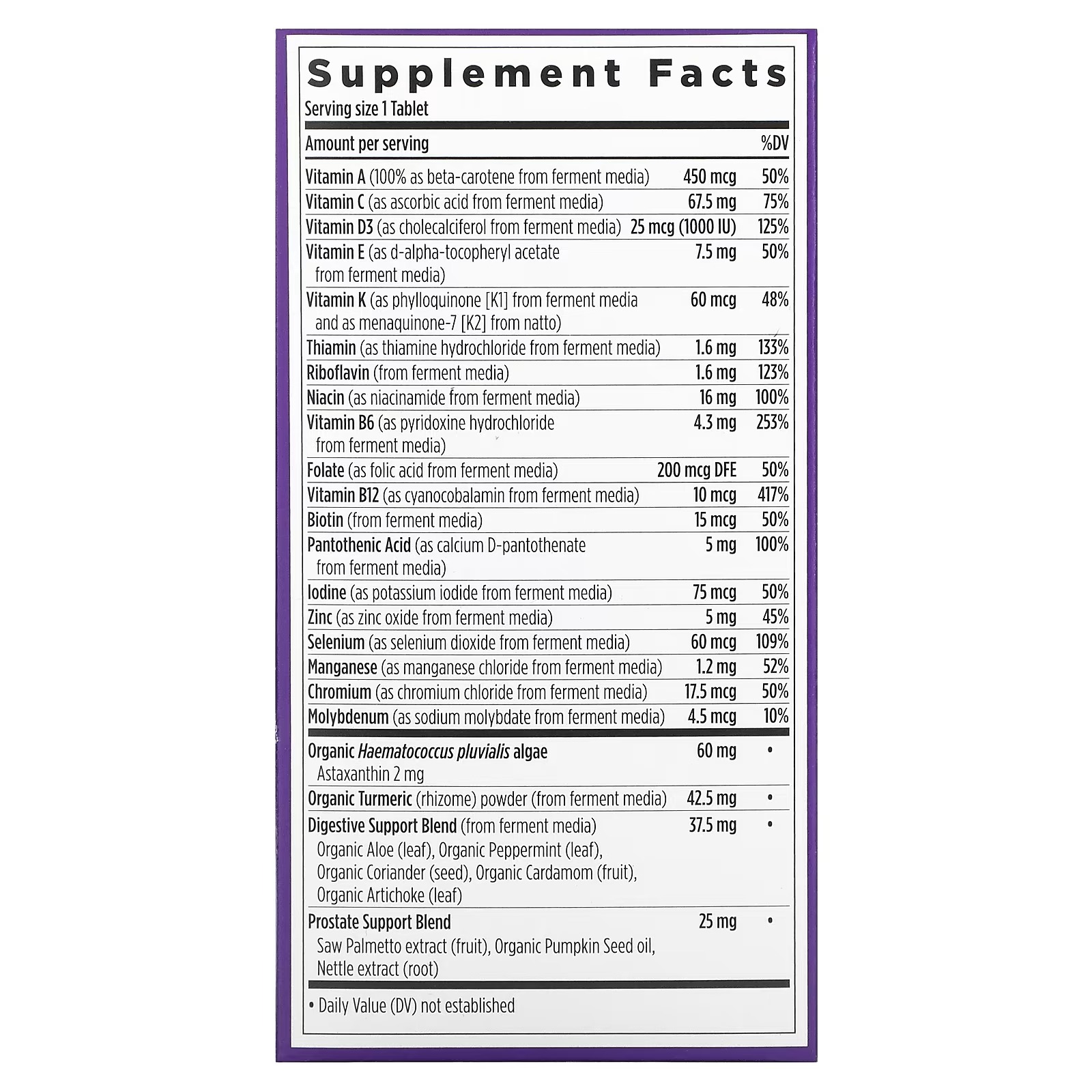 Expertly formulated to support the holistic health needs of men 55+, with nutrients for brain, eye, bone & prostate health support, stress, mood, vision & digestive support, and healthy hair, skin & nails. Iron-Free.