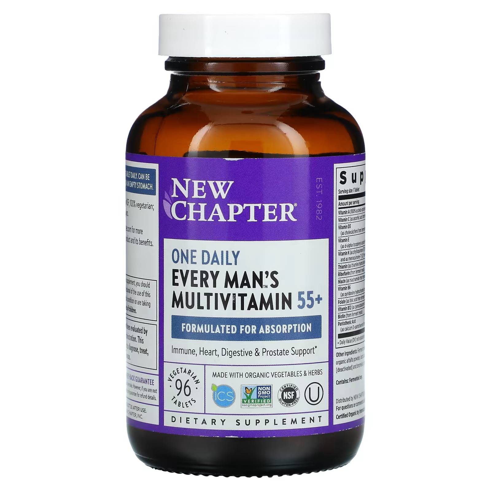 Expertly formulated to support the holistic health needs of men 55+, with nutrients for brain, eye, bone & prostate health support, stress, mood, vision & digestive support, and healthy hair, skin & nails. Iron-Free.