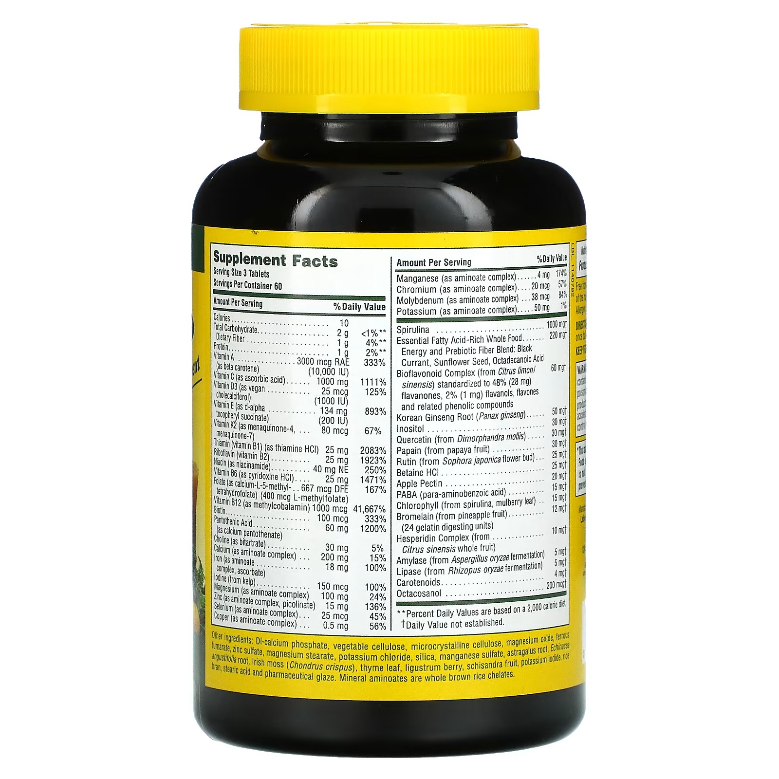 Di-calcium phosphate, vegetable cellulose, microcrystalline cellulose, magnesium oxide, ferrous fumarate, zinc sulfate, magnesium stearate, potassium chloride, silica, manganese sulfate, astragalus root. Echinacea angustifolia root, irish moss (chondrus crispus), thyme leaf, ligustrum berry, schisandra fruit, potassium iodide, rice bran, stearic acid and pharmaceutical glaze.