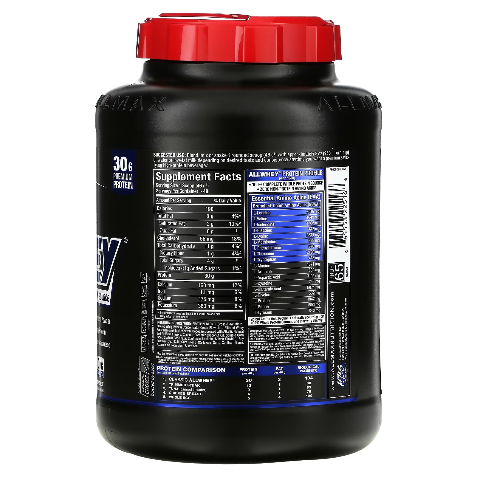 When you’re looking for a protein, you’re looking for the cleanest protein at the best price. Compare us to the competition, some are as low as 50% protein! Look at their serving size and total protein and do the math. Check their ingredients, others often contain inferior non-whey protein sources. ALLWHEY® stands head and shoulders above the competition delivering exceptional value with 30 g protein at a cost that will keep you smiling all the way to the gym!