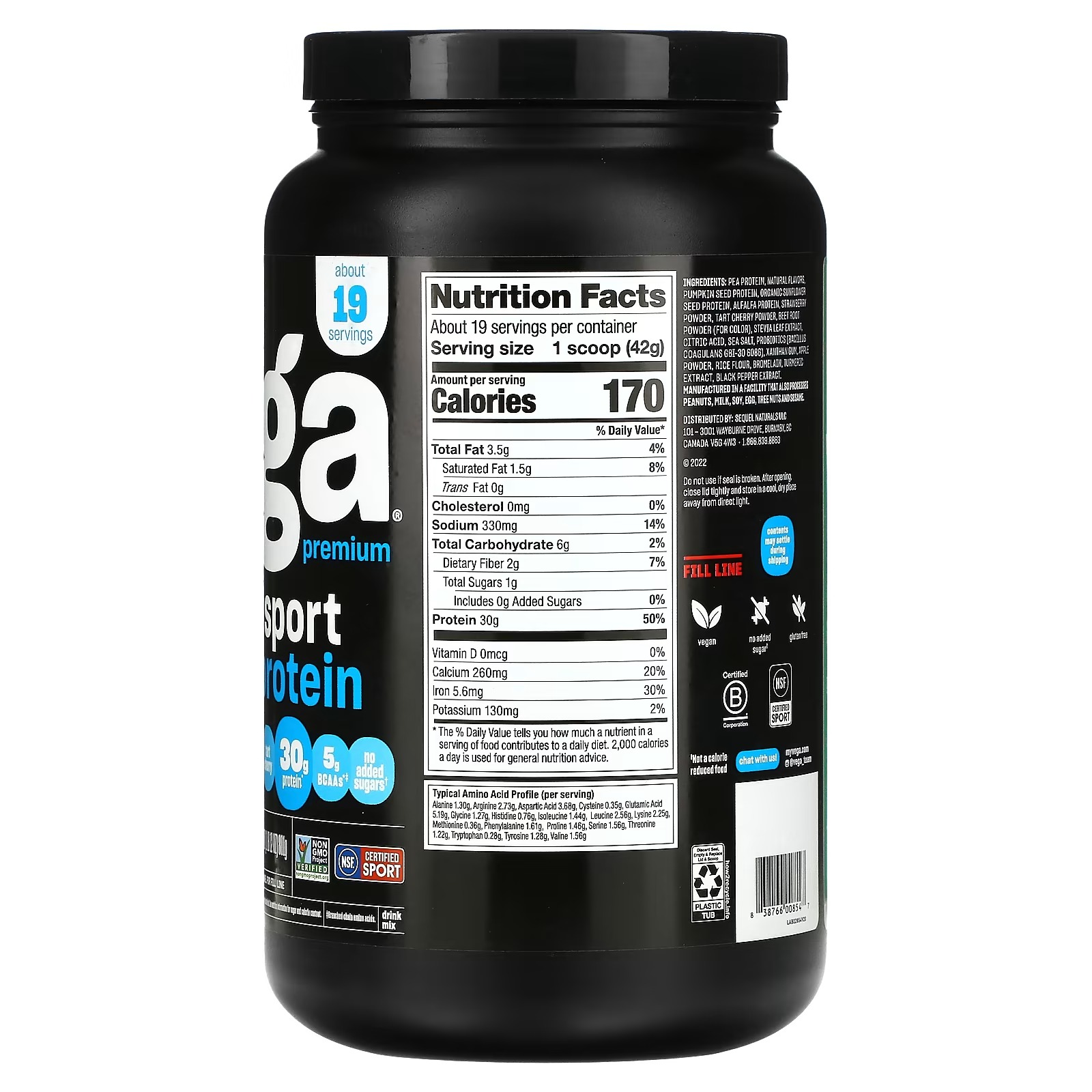 Vega, Sport, Plant-Based Premium Protein Powder, Berry, 1 lb 12 oz (801 g)